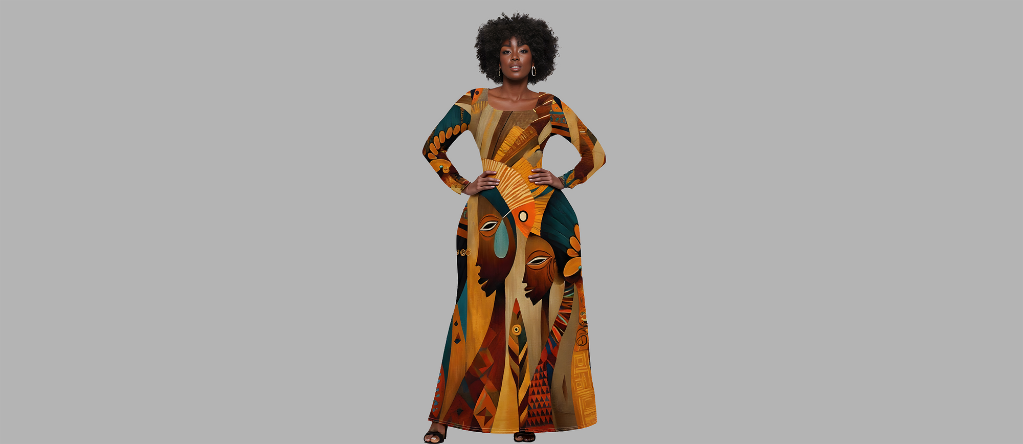 V Neck African Woman Canvas Short Sleeve Maxi Dress
