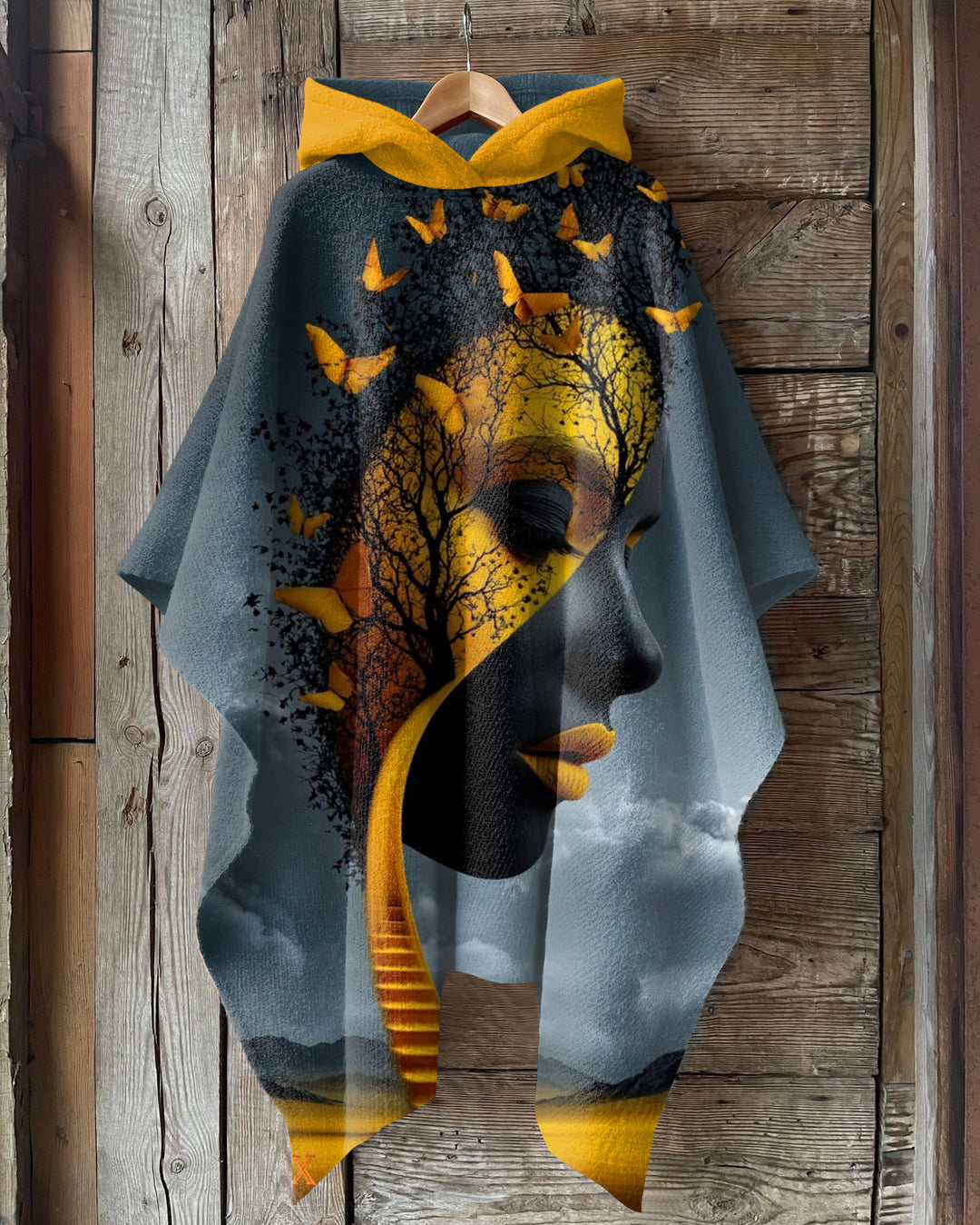 Butterfly Tree Girl Art Fleece Hooded Loose Cape