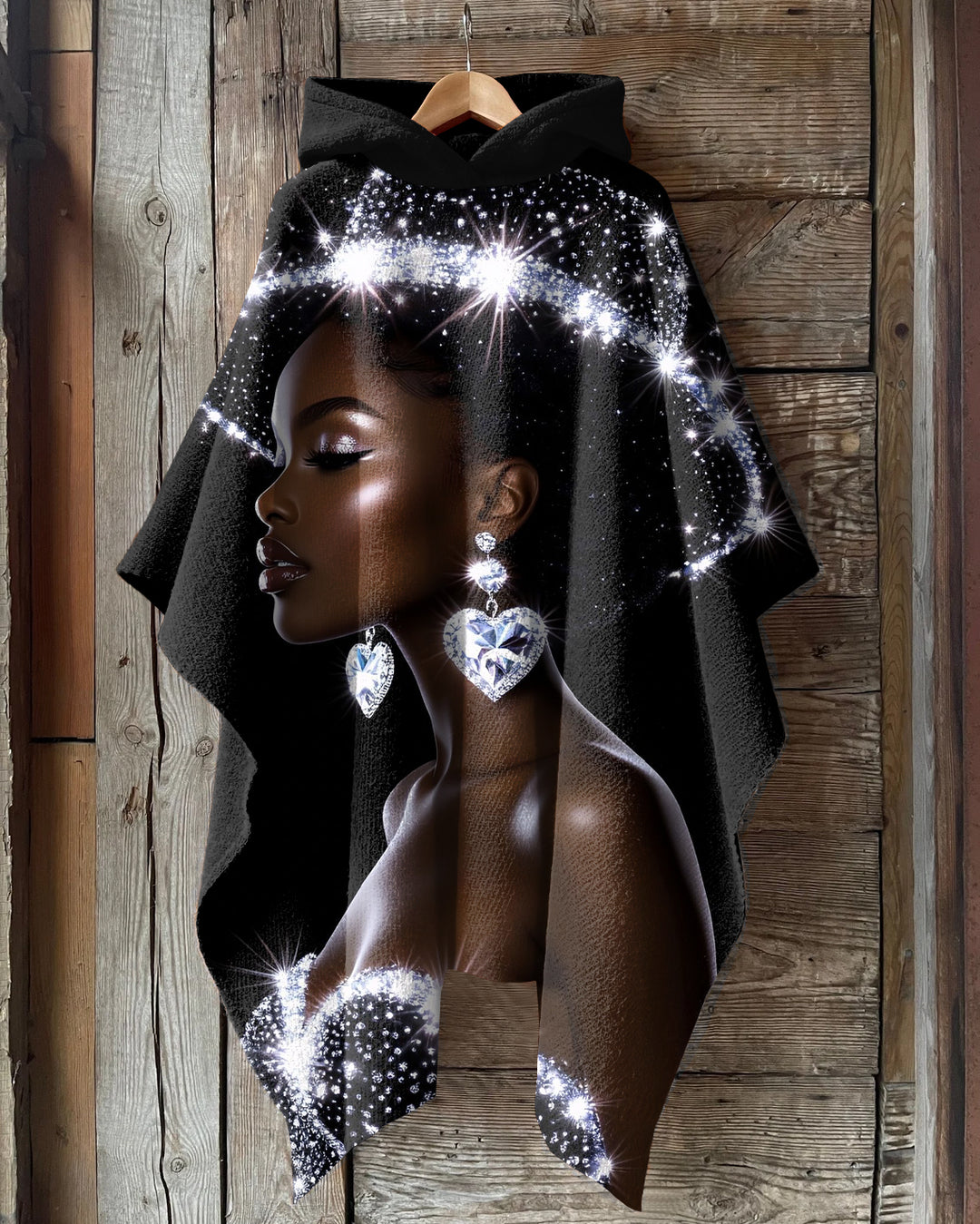 Diamond Elegant Women Fleece Hooded Loose Cape