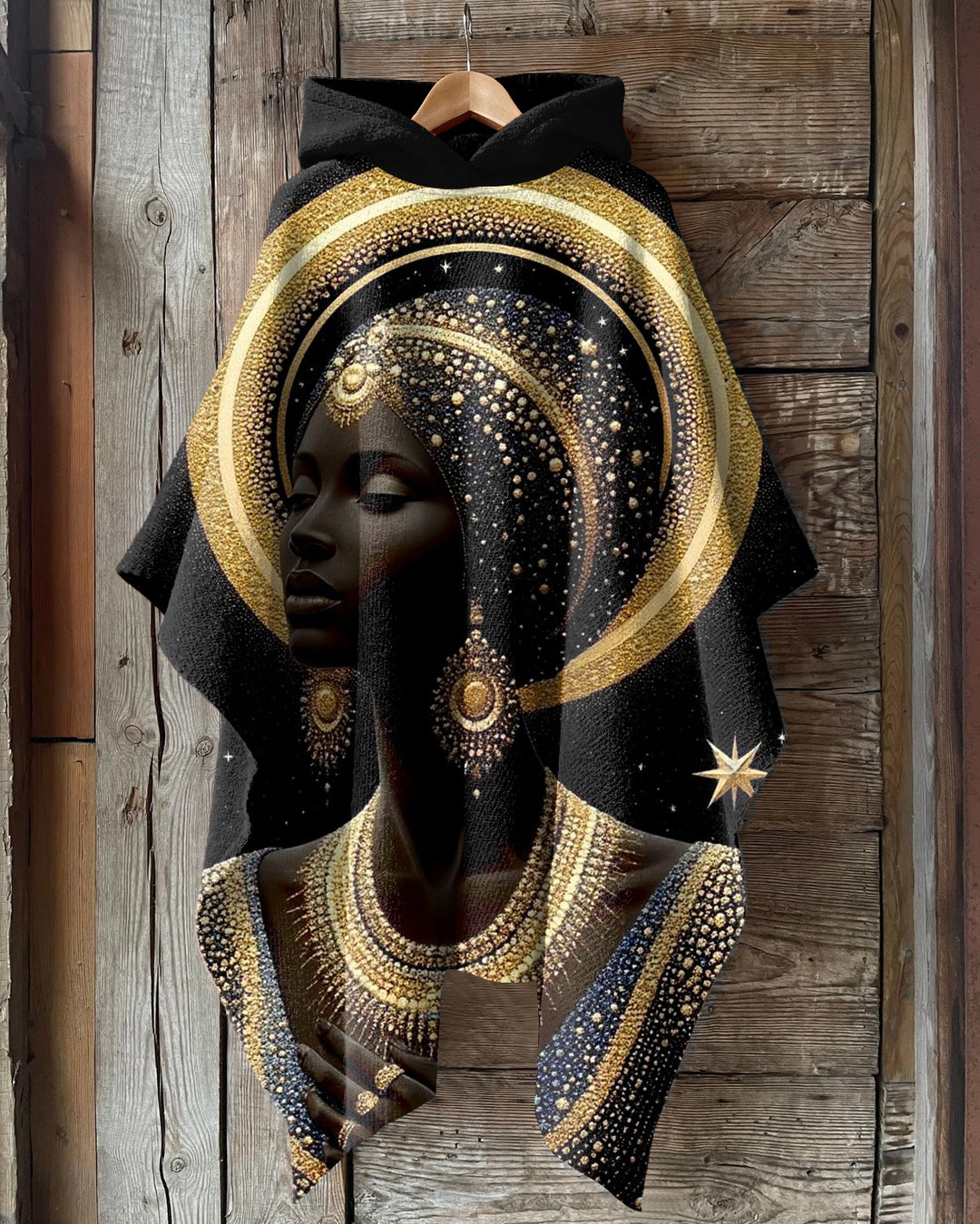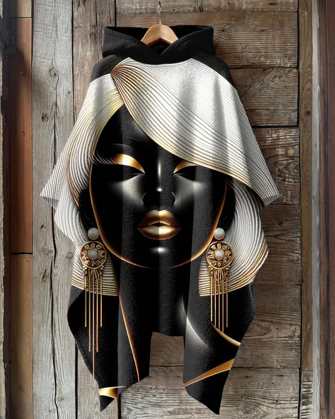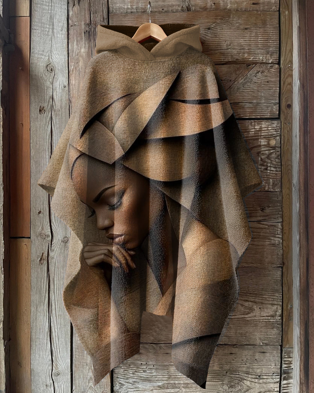 Beautiful Brown Woman Fleece Hooded Loose Cape