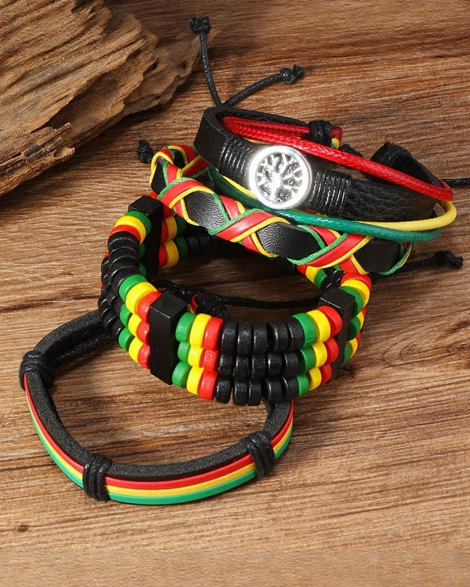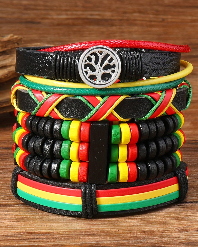 Jamaican Reggae Color Peace Tree Multi-piece Wooden Bead Bracelets