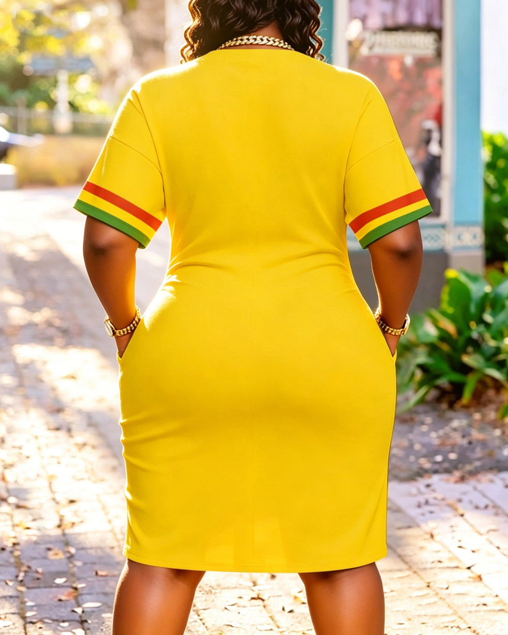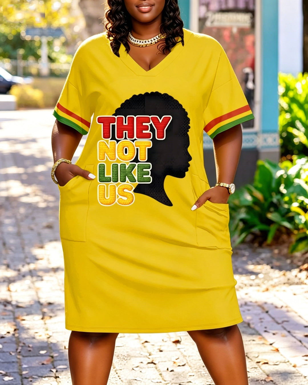 They Not Like Us Print Pocket Short Sleeve Casual Dress