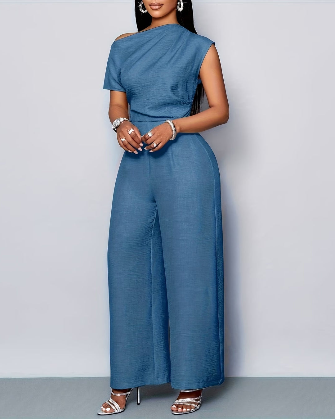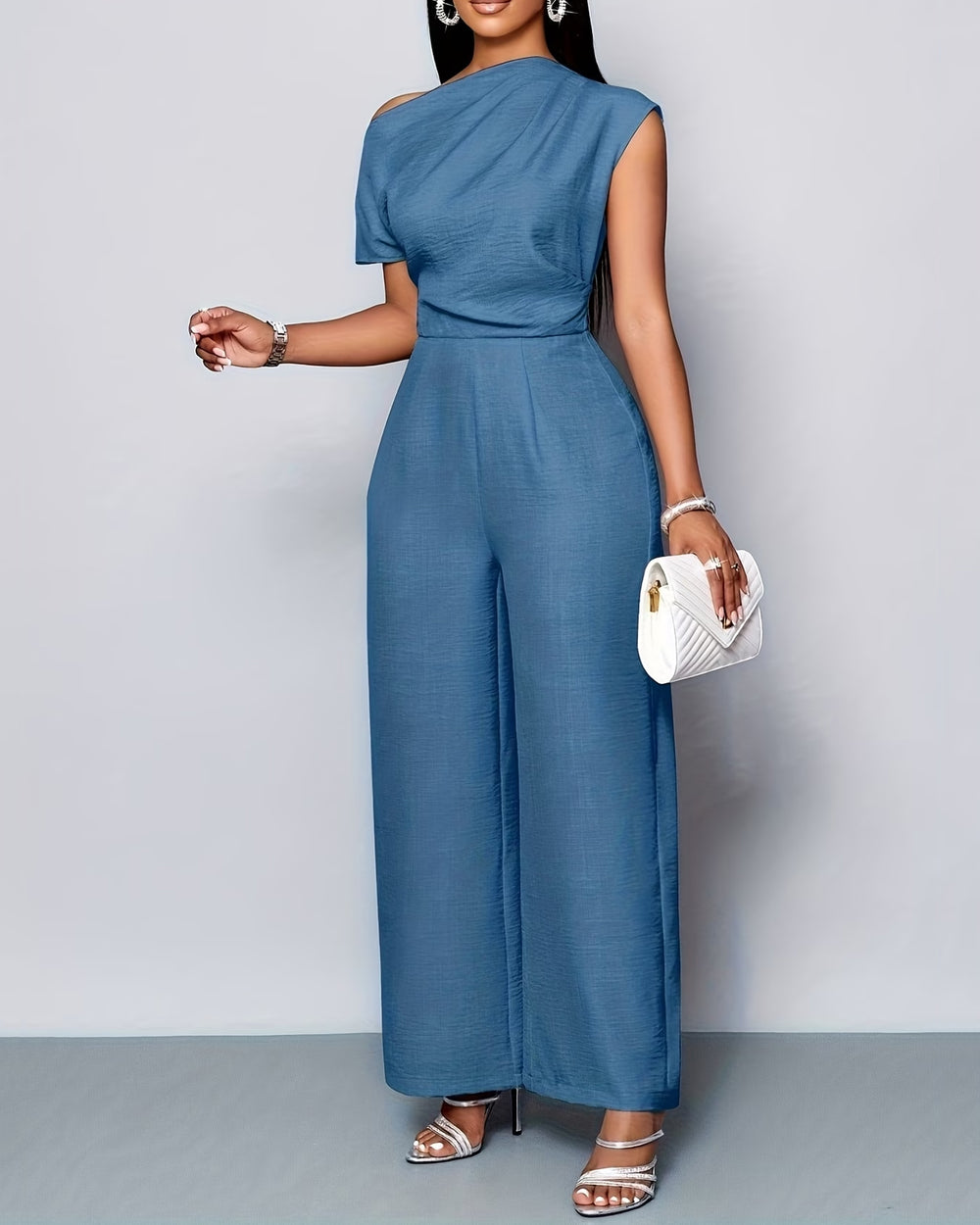 Elegant Women's Asymmetric One-Shoulder Wide-Leg Jumpsuit
