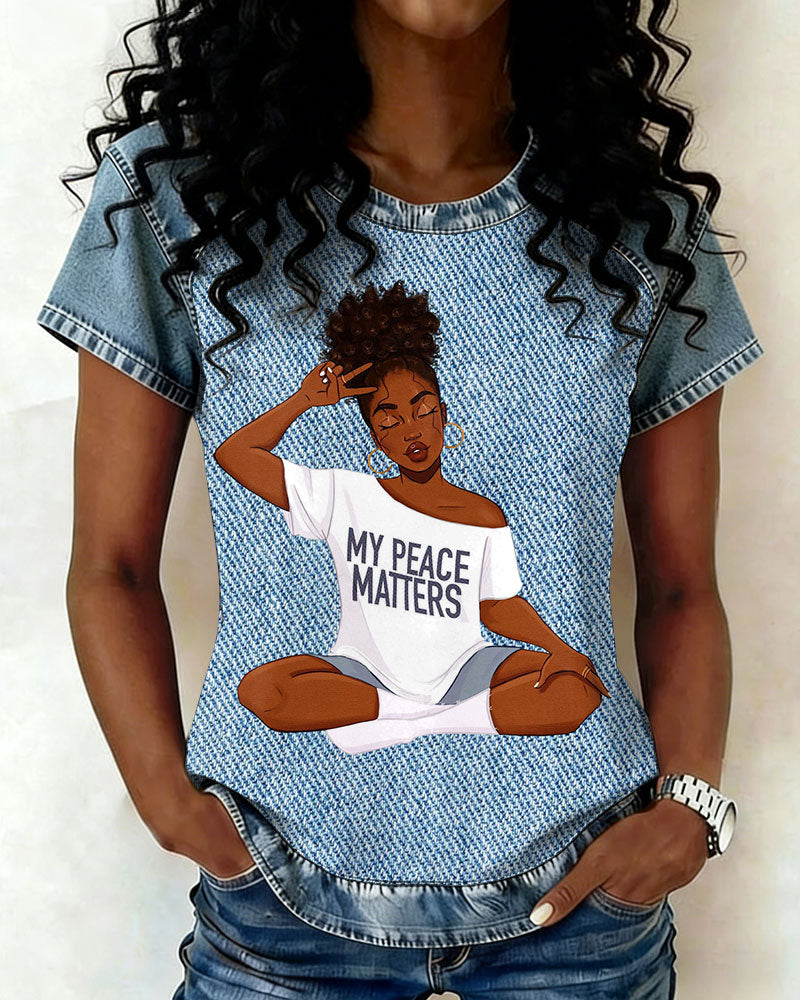 Crew Neck My Peace Matters Print Short-sleeved T-shirt
