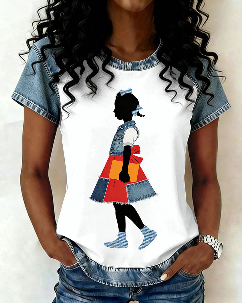 Crew Neck Ruby Bridges Print Short-sleeved T-shirt