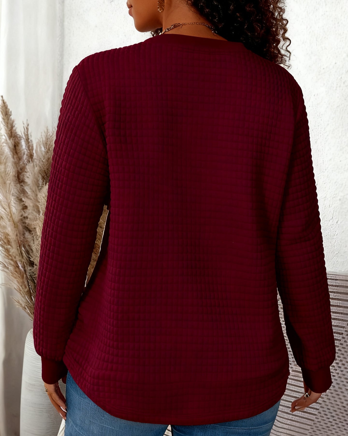 She Is Me Waffle Crewneck Long Sleeve Sweatshirt