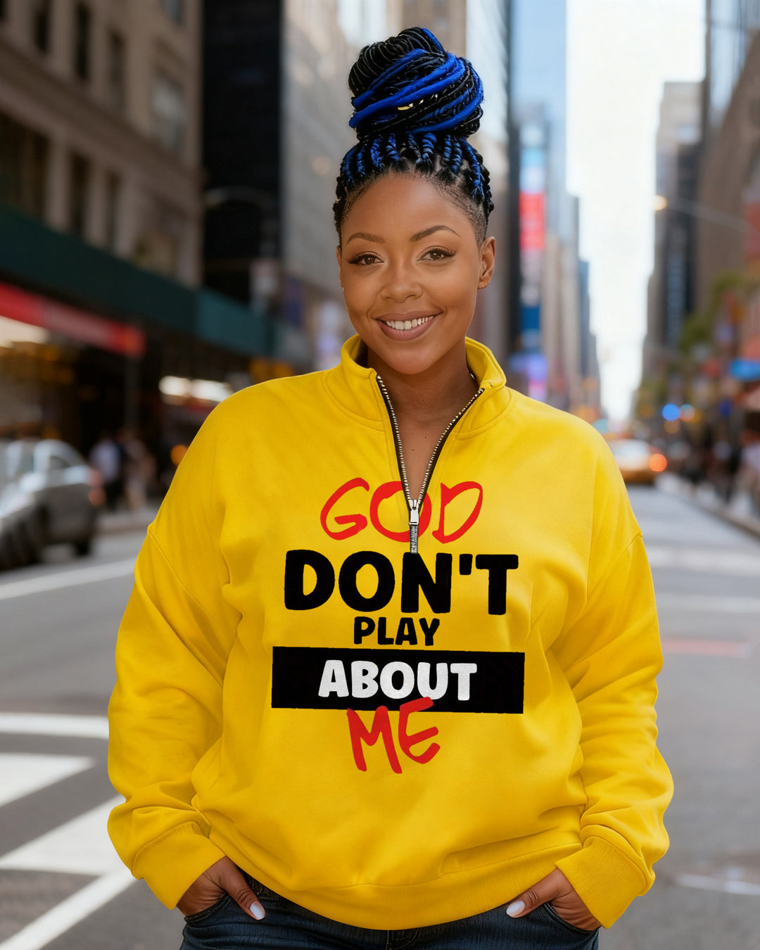 God Don't Play About Me Stand Collar Zip Up Long Sleeve Sweatshirt