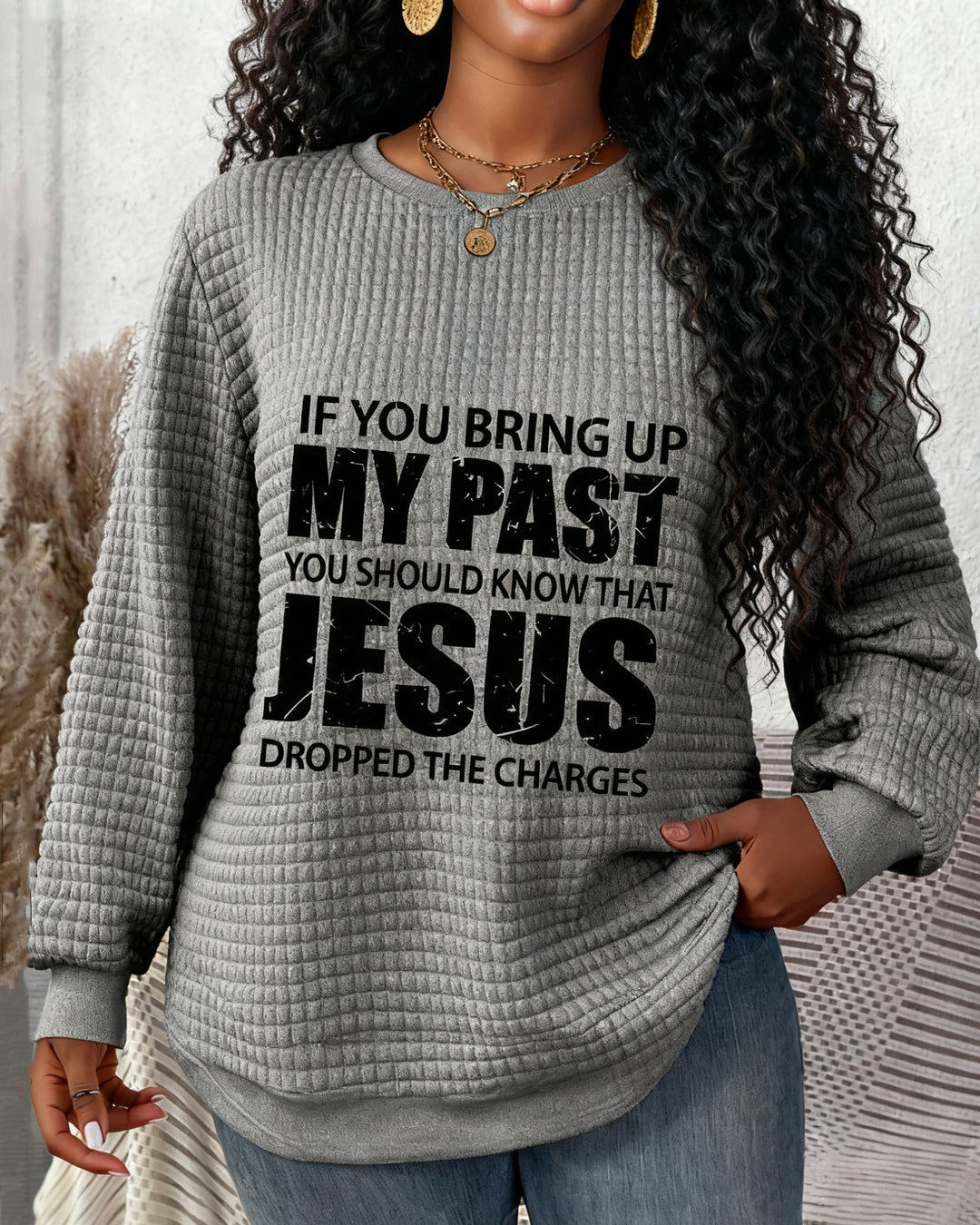 Jesus Dropped The Charges Waffle Crewneck Long Sleeve Sweatshirt