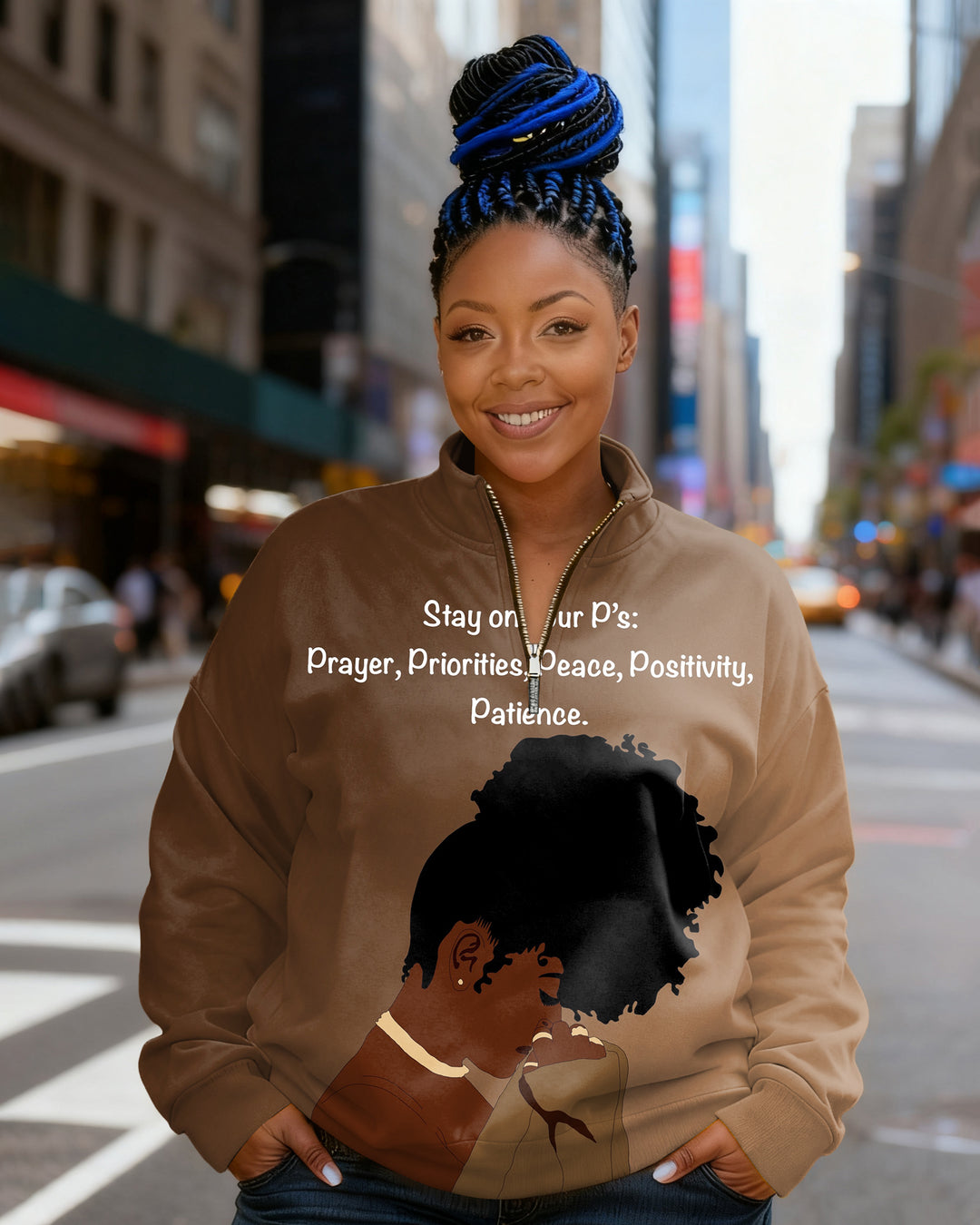 Black Girl My Peace My Matters Stand Collar Zip Up Long Sleeve Sweatshirt