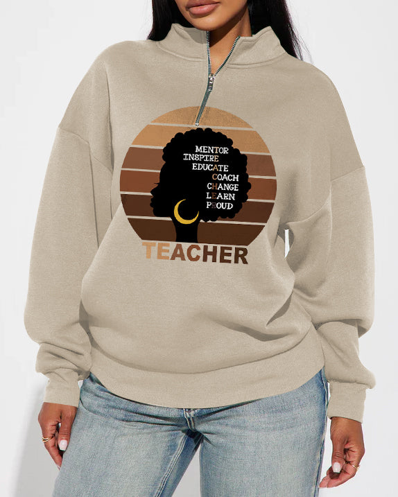 Black Teachers Dope Stand Collar Zip Up Long Sleeve Sweatshirt
