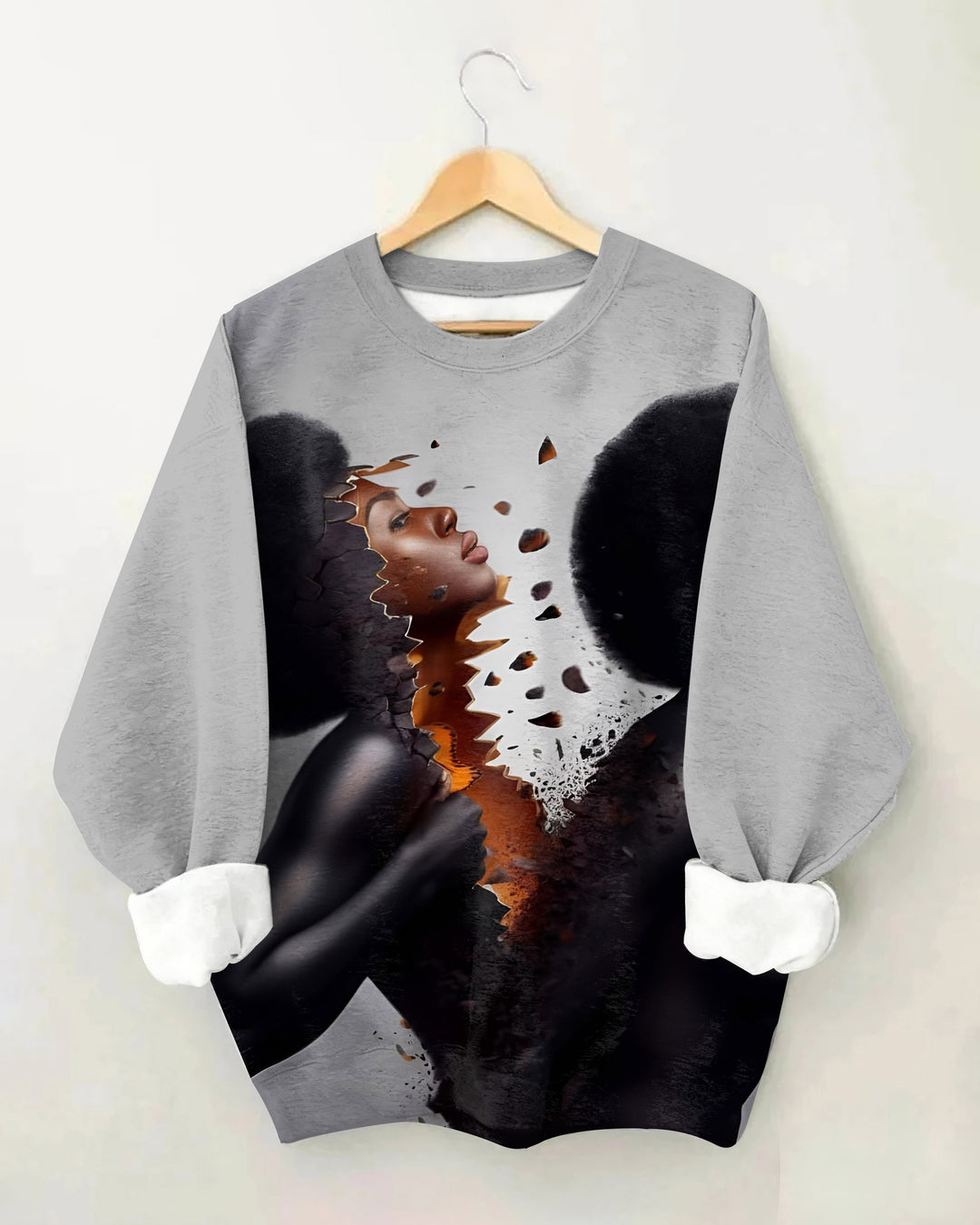 Black Woman Art Graffiti Crewneck Long Sleeve Sweatshirt