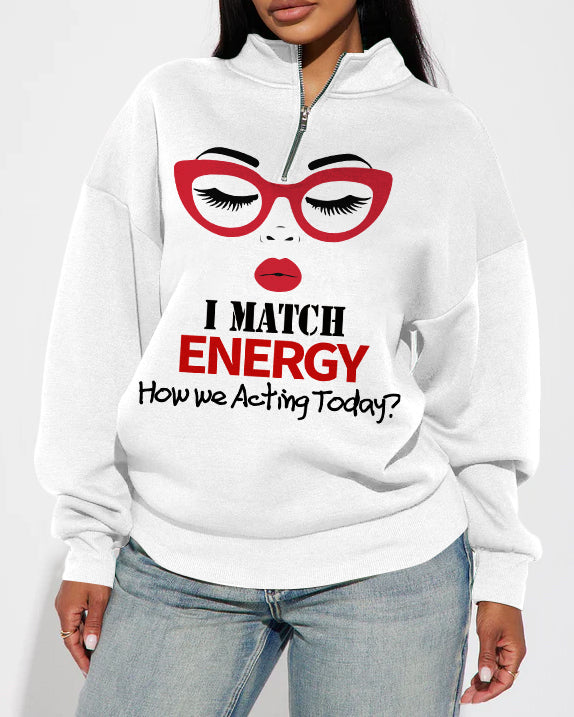 I Match Energy So How We Gon' Act Today Stand Collar Zip Up Long Sleeve Sweatshirt
