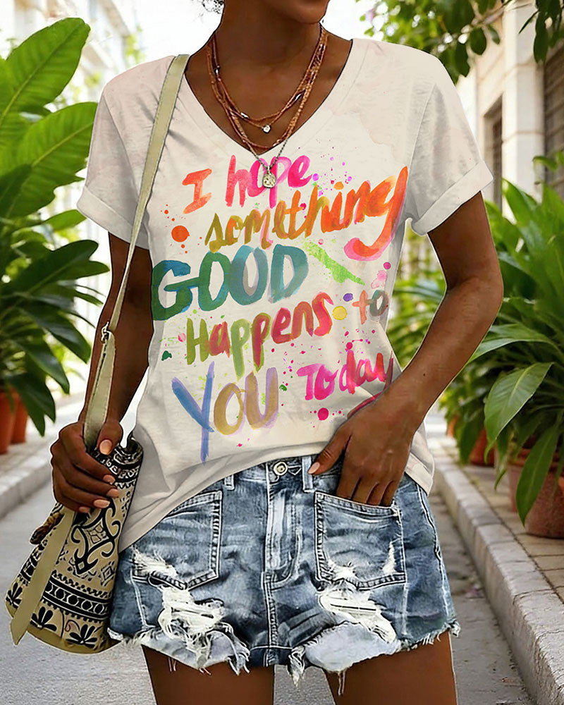 I Hope Good Things Happen To You V Neck Short Sleeve Tshirt