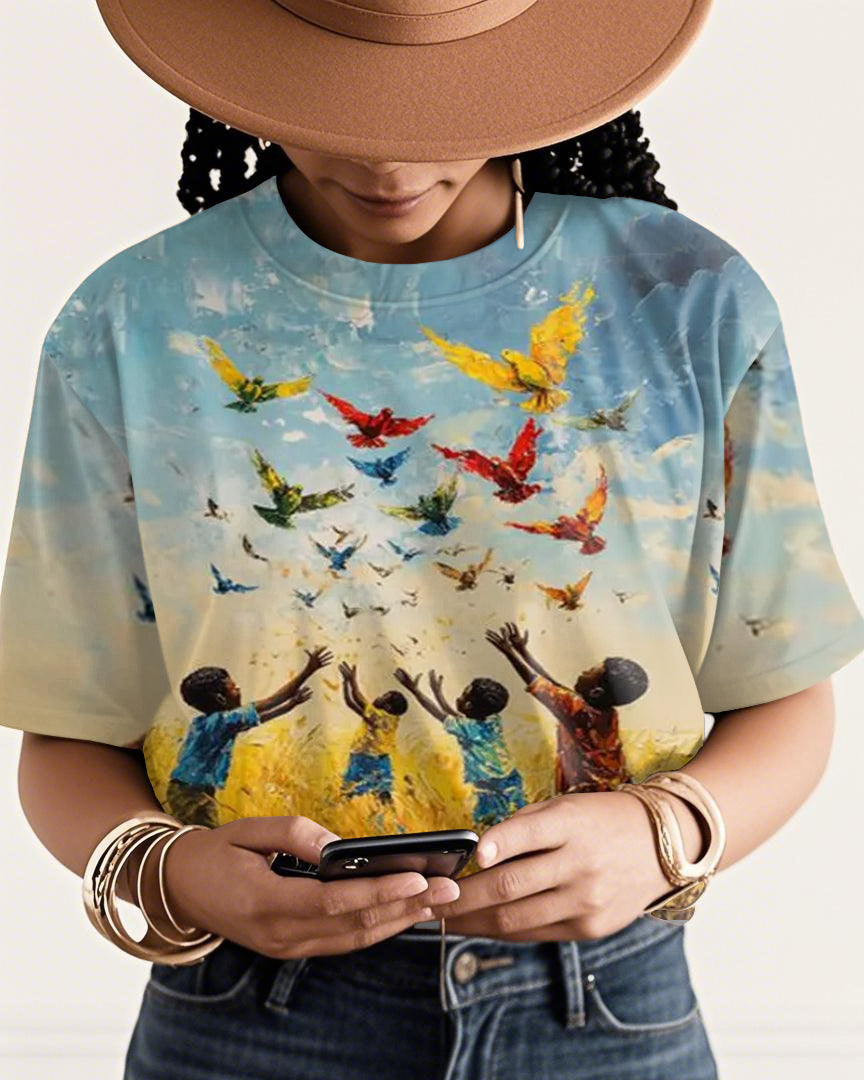 Wings of Joy Afrocentric Children Crew Neck Short Sleeve Tshirt