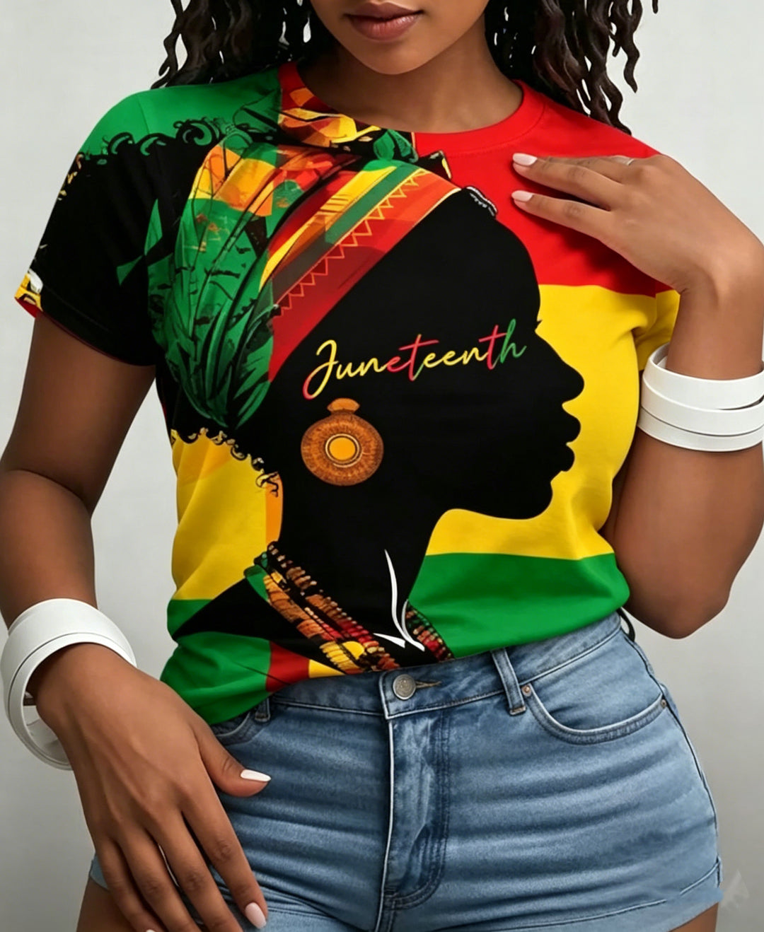 Juneteenth Black Woman in Headwrap Crew Neck Short Sleeve Tshirt