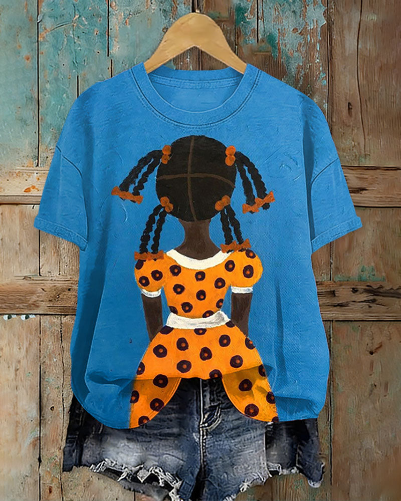 Artwork of A Black Girl with Braids Crew Neck Short Sleeve Tshirt