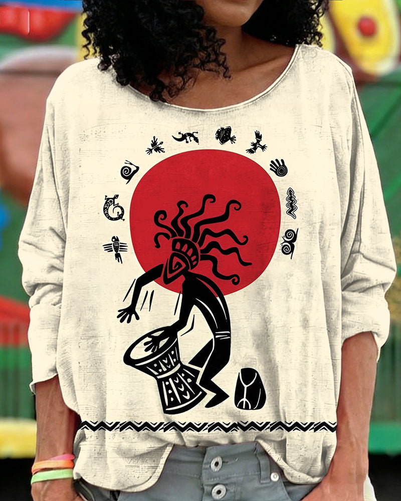 Retro Tribal Totem Women Casual Long Sleeve T-shirt