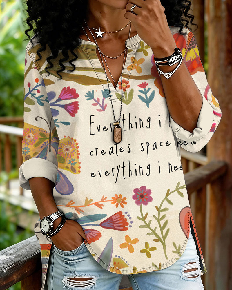 Everything I Lose Creates Space for Eveything I Need V-neck Long Sleeve Top