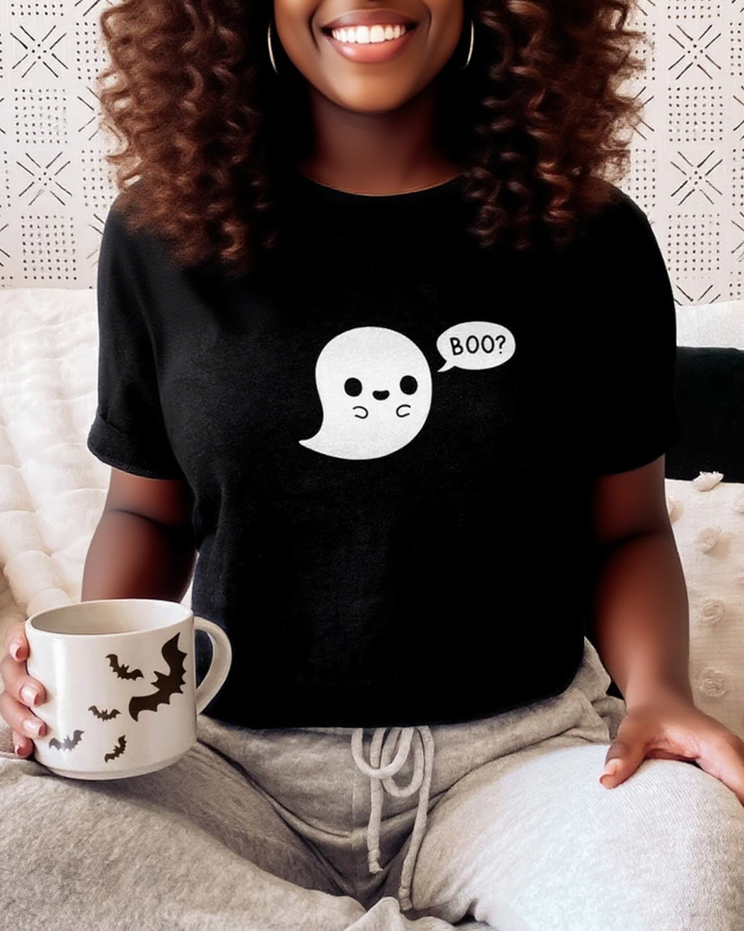 Cute Ghost Halloween 100% Cotton Crew Neck Short Sleeve Tshirt