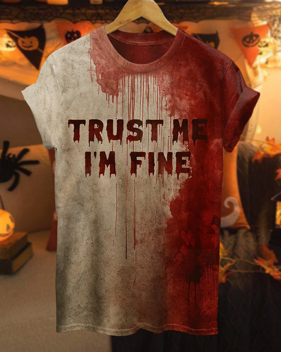 Halloween Blood Trust Me I'm Fine Crew Neck Short Sleeve Tshirt