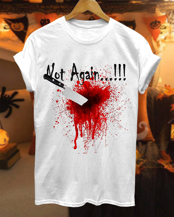 Halloween Not Again Blood Cotton Crew Neck Short Sleeve Tshirt