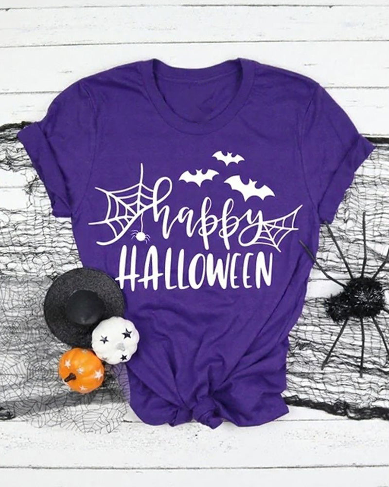 Happy Halloween Crew Neck Casual Short-Sleeved T-Shirt