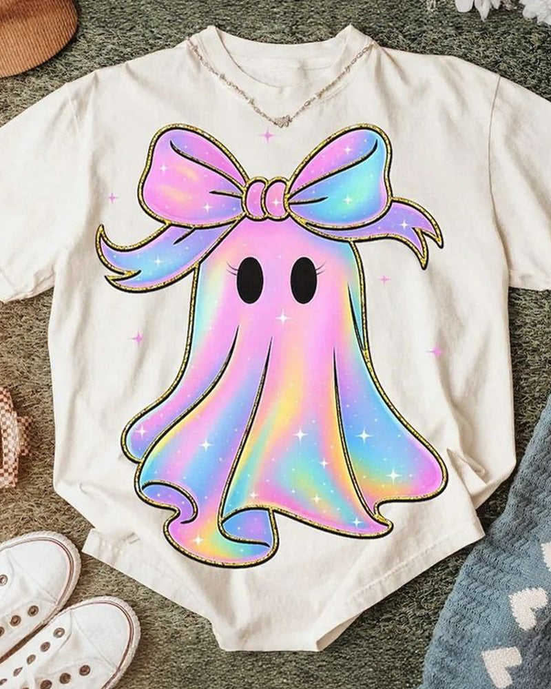 Iridescent Ghost Crew Neck Casual Short-Sleeved T-Shirt