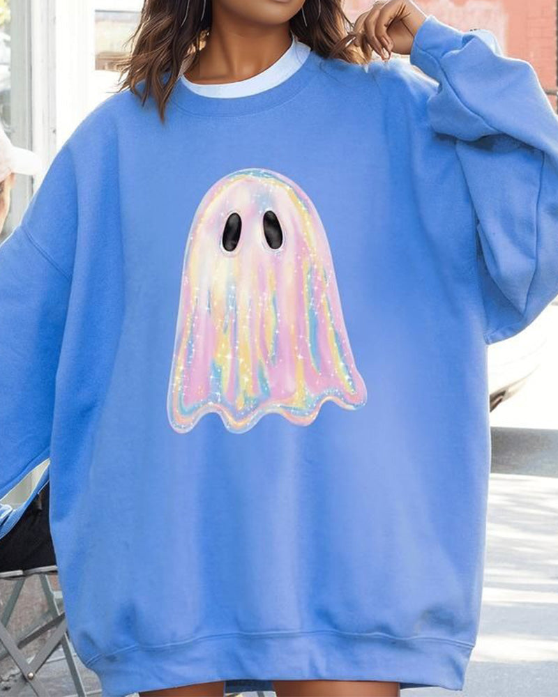 Sparkling Ghost Halloween Print Cotton Long Sleeve Sweatshirt