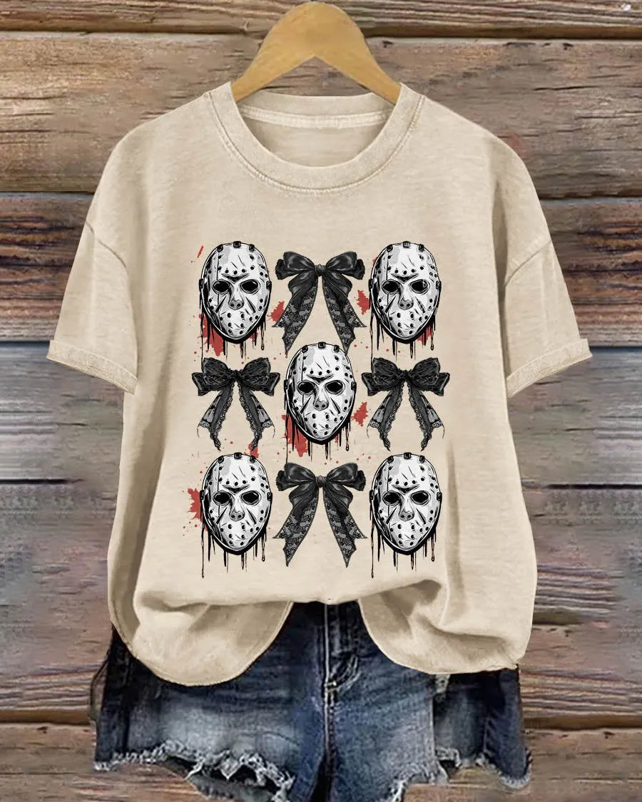 Halloween Hockey Mask Killer Cotton Crew Neck Short Sleeve Tshirt