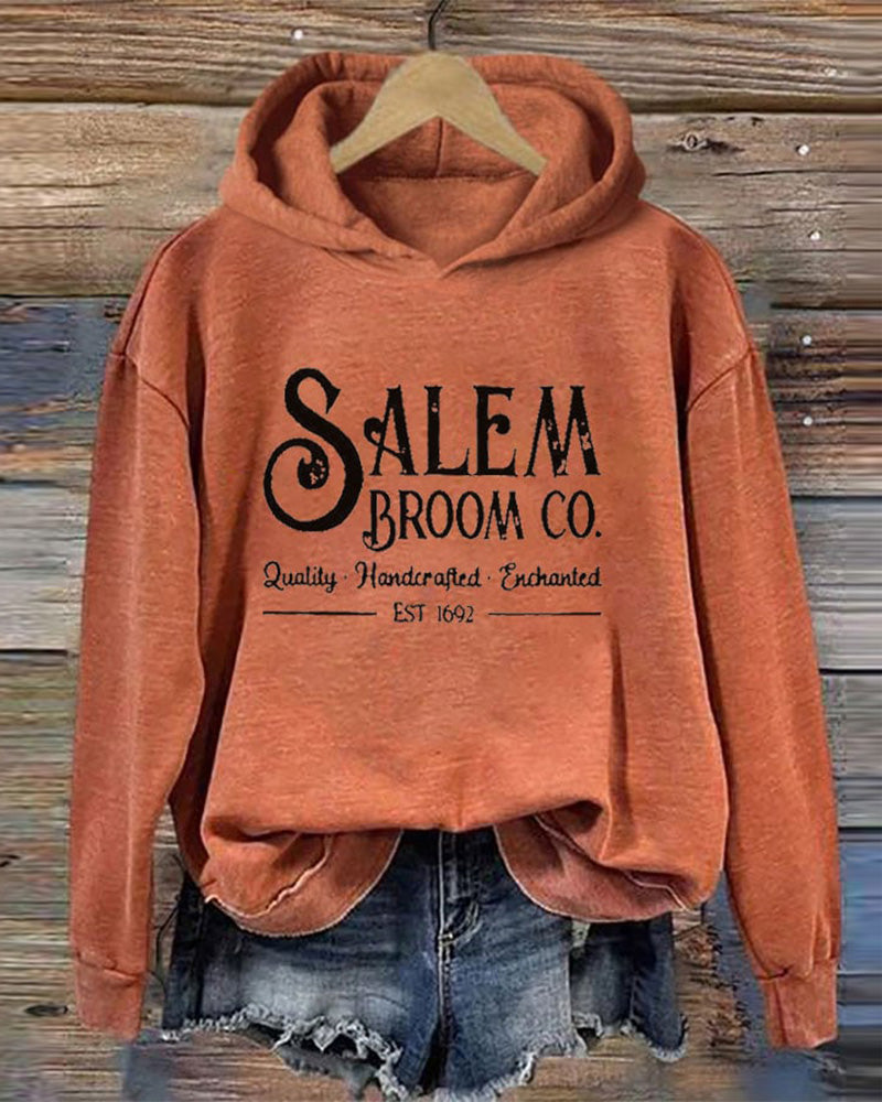 Women's Salem Broom Co Quality Handcrafted Enchanted Est 1692 Printed Hoodie