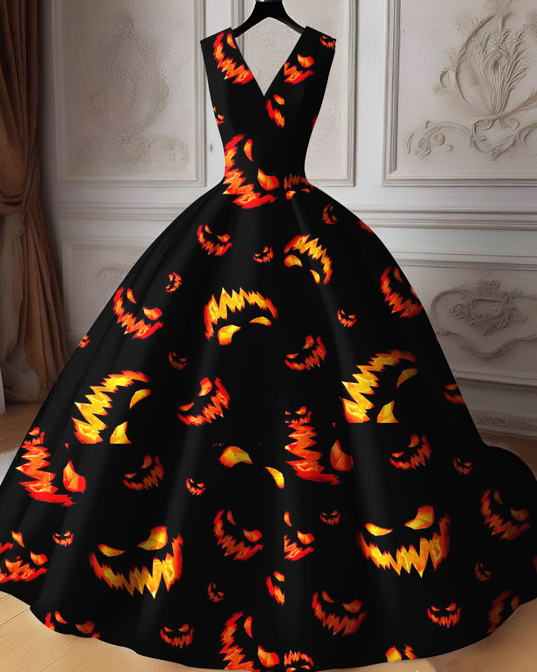 V-neck Halloween Demon Face Wedding Maxi Dress