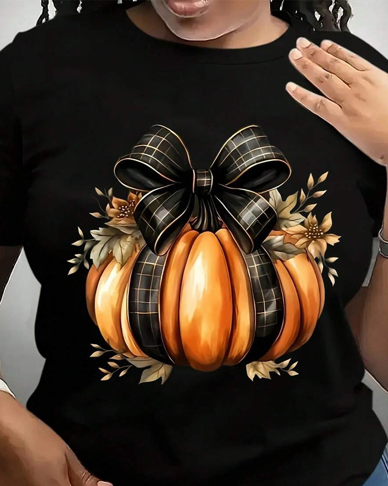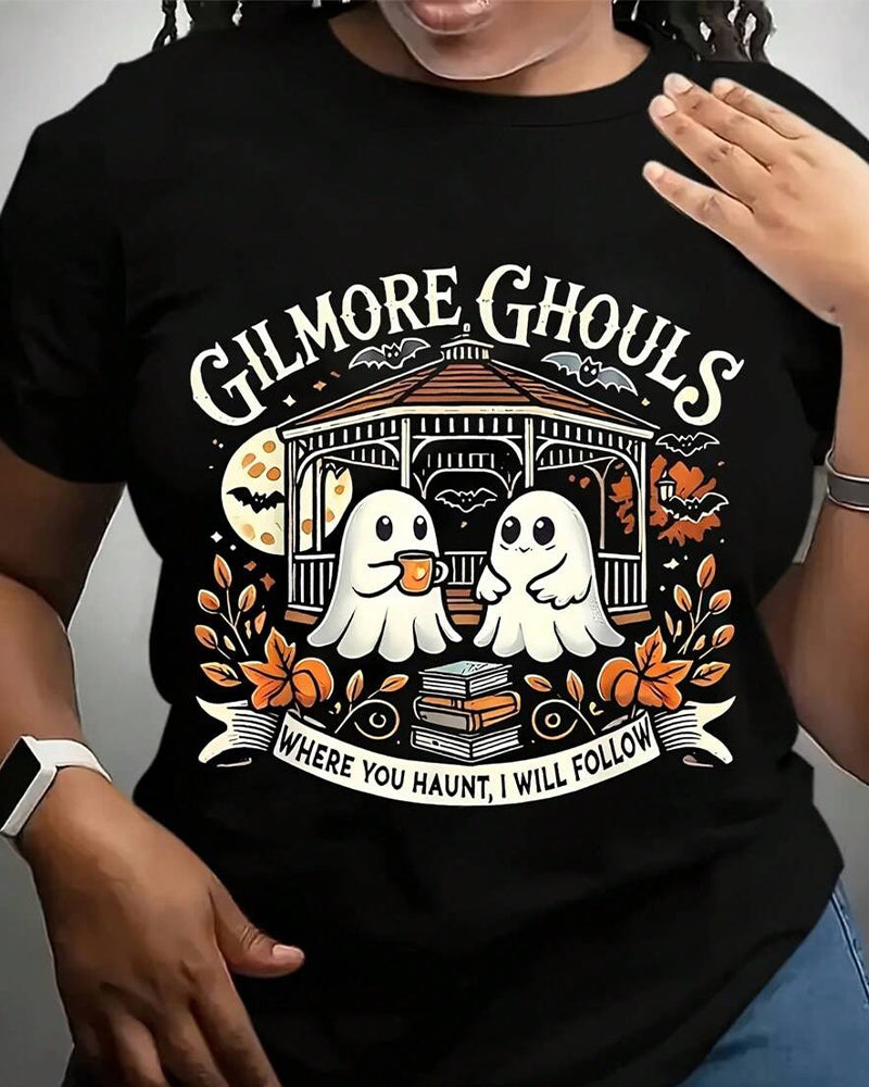 Halloween Pumpkin & Ghost Pattern Print T-Shirt