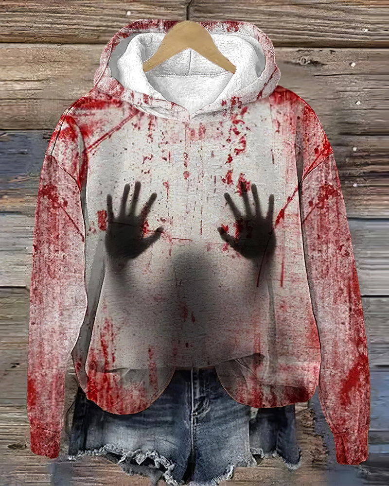 Women's Blood Stained Ghost Print Long-sleeved Hoodie