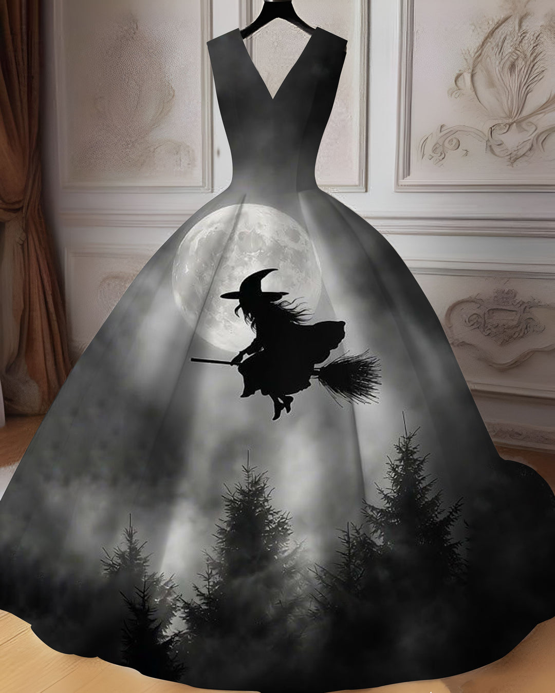 V-neck Halloween Witch Graffiti Wedding Maxi Dress