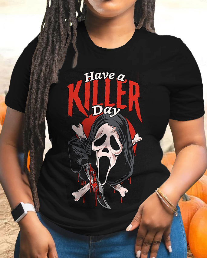Halloween Have A Killer Day Cotton Crew Neck Short Sleeve Tshirt