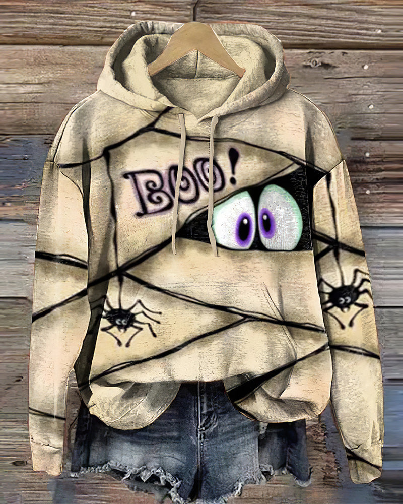 Halloween Boo Mummy Inspired Contrast Long-sleeved Hoodie