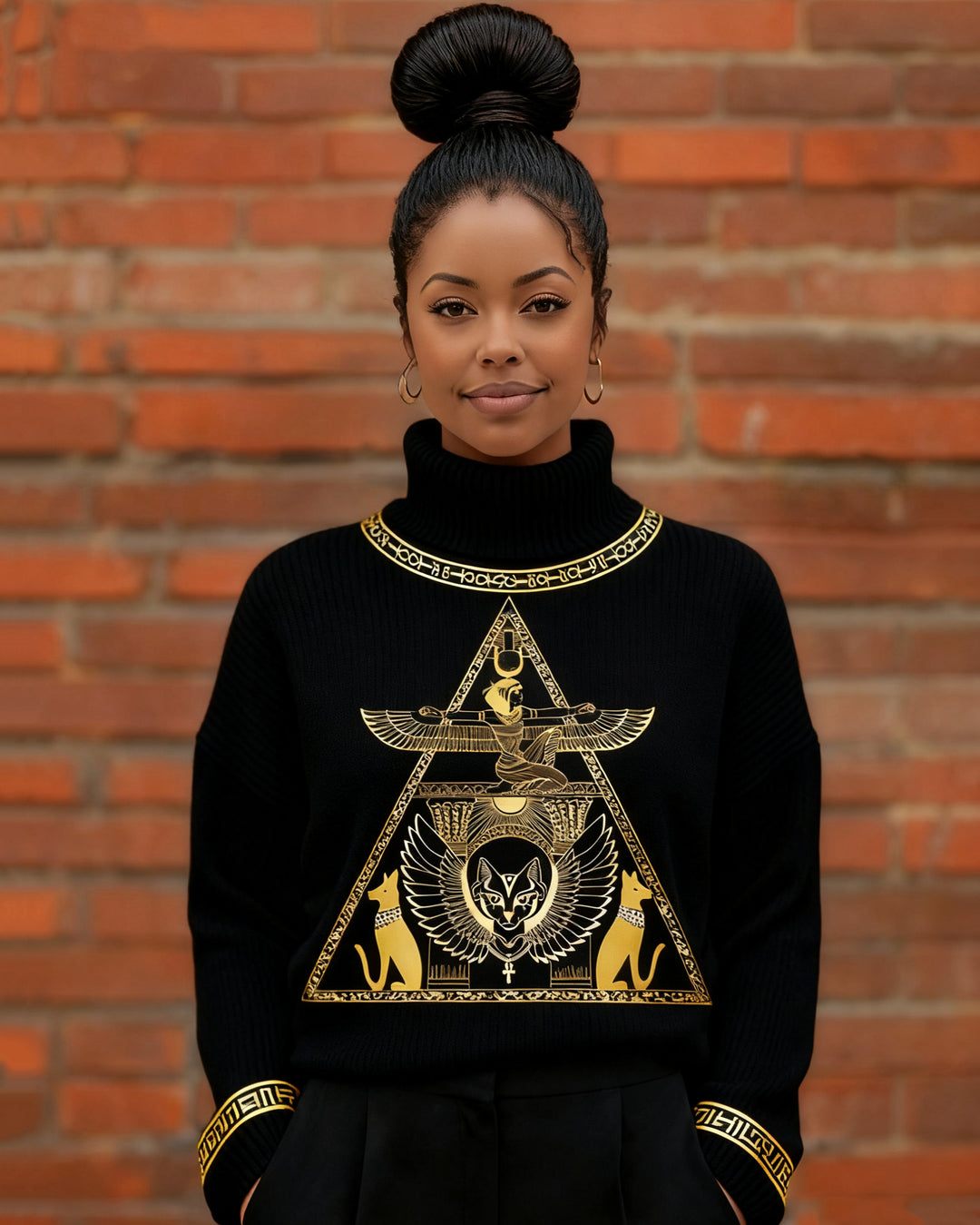 Egyptian Goddess Wolf Totem Turtleneck Long-sleeved Knit Sweater