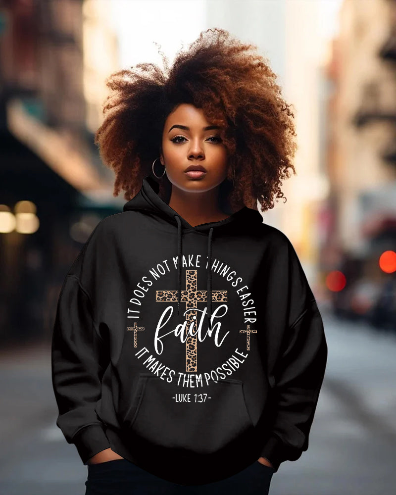 Faith it Till You Make it Print Fleece Hooded Loose Cape