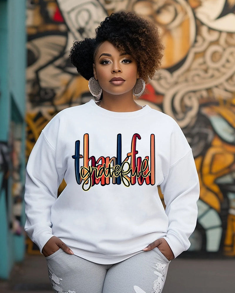 Thanksgiving Day Slogan Thankful Grateful Print Crewneck Long Sleeve Sweatshirt