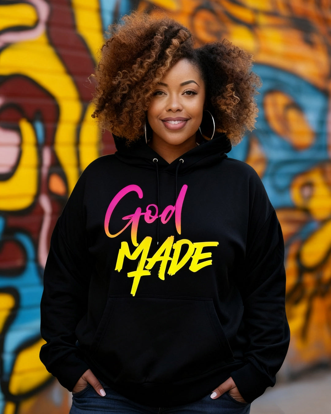 Focused Black Girl Pocket Drawstring Long Sleeve Hoodie Dress