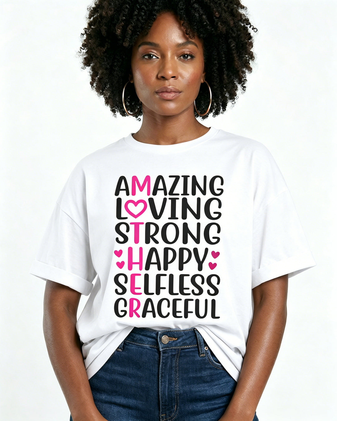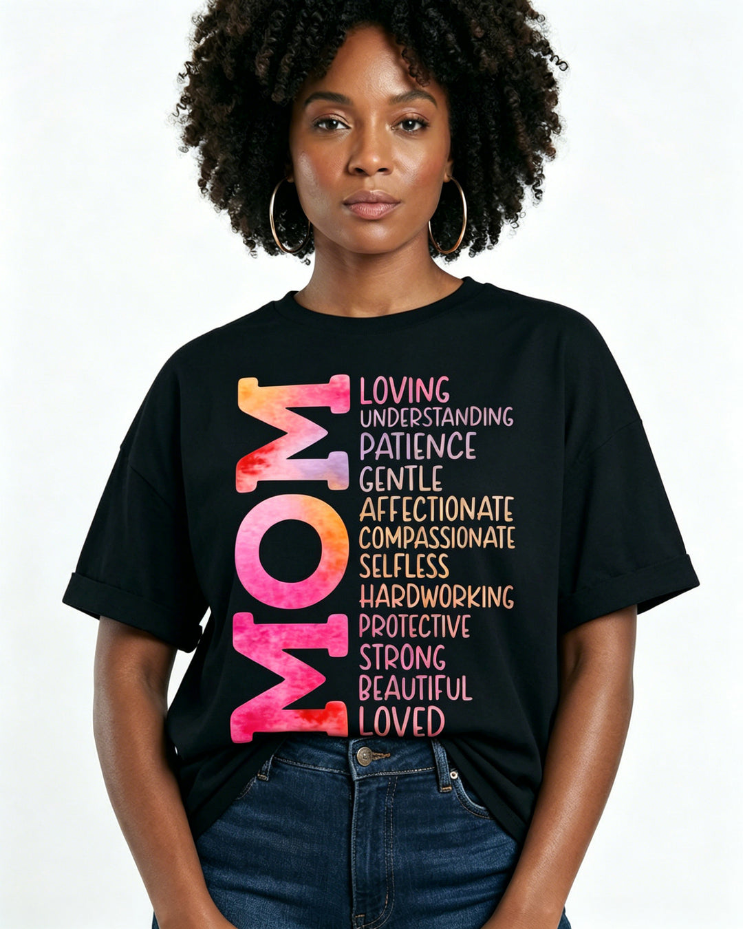 100% Cotton Mom Vertical Word Art Crew Neck Short Sleeve Tshirt