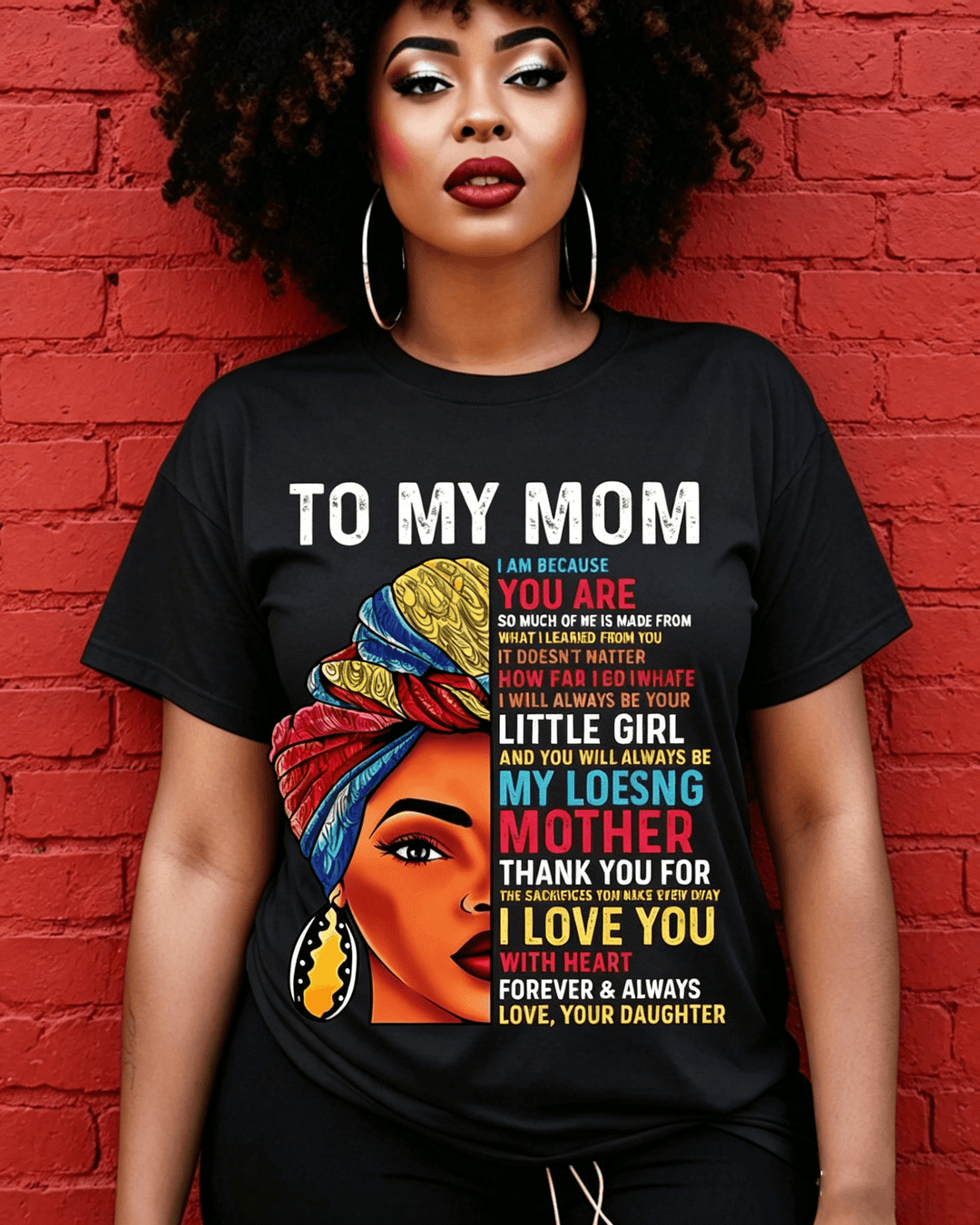 100% Cotton To My Mom Black Mother Crew Neck Short Sleeve Tshirt