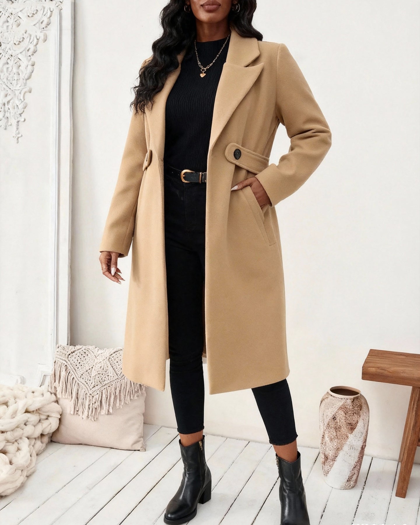 - Style: Autumn And Winter Long Lapel Slim Fit Woolen Coat