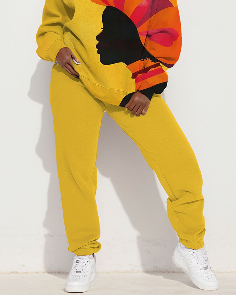 Chic Art Print Long Sleeve Crewneck Sweatshirt And Sweatpants Set