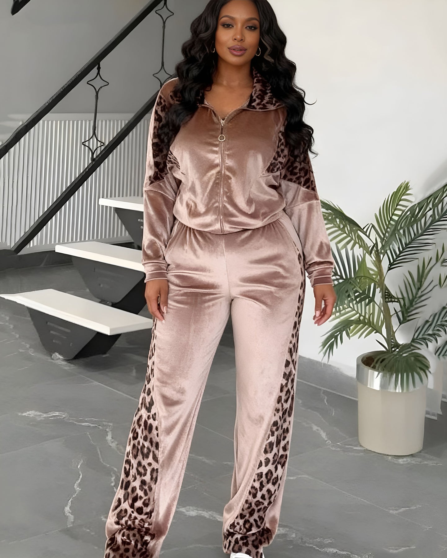 • Style: Leopard Print Contrast Trousers Long Sleeve Home Suit
