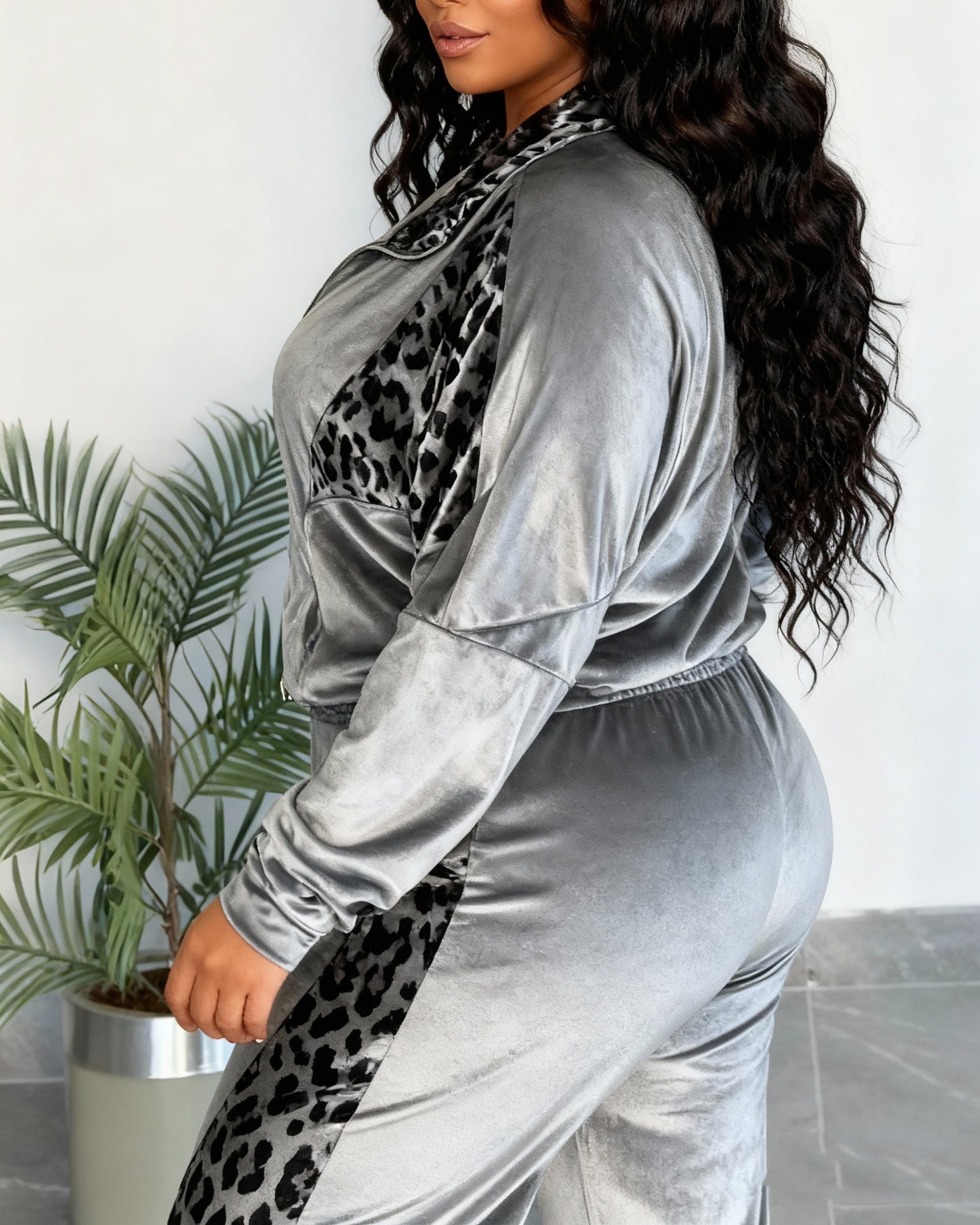Leopard Print Contrast Trousers Long Sleeve Home Suit