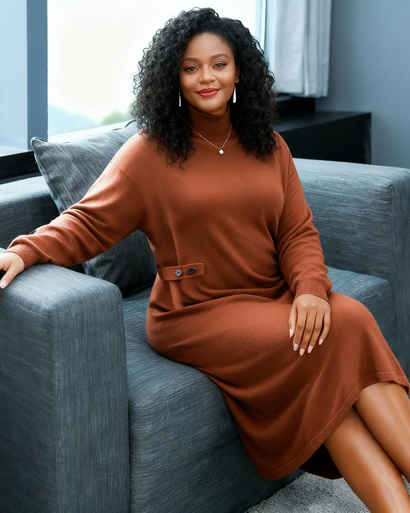 - Style: Knitted Solid Color Sweater Dress All-match Sweater Dress