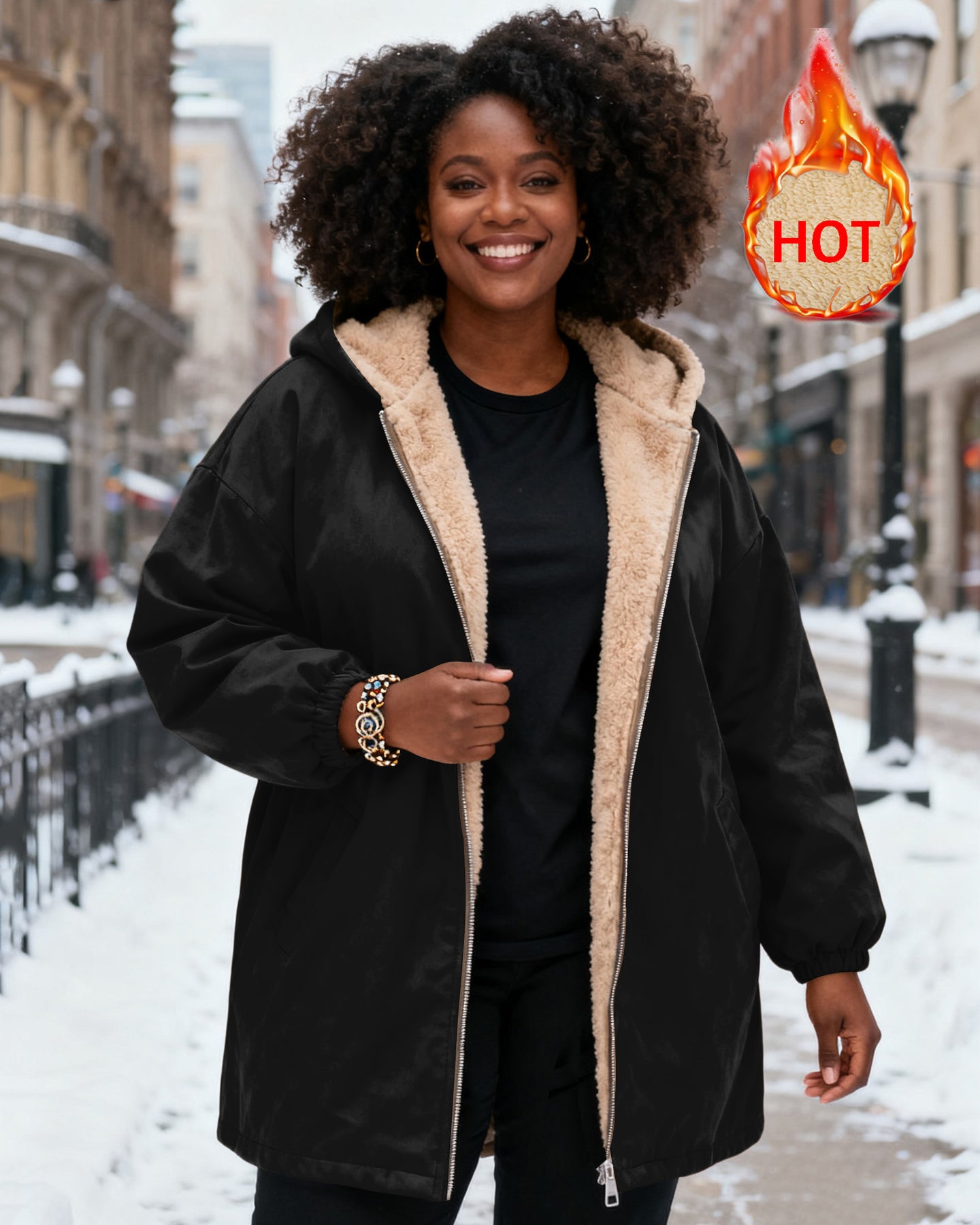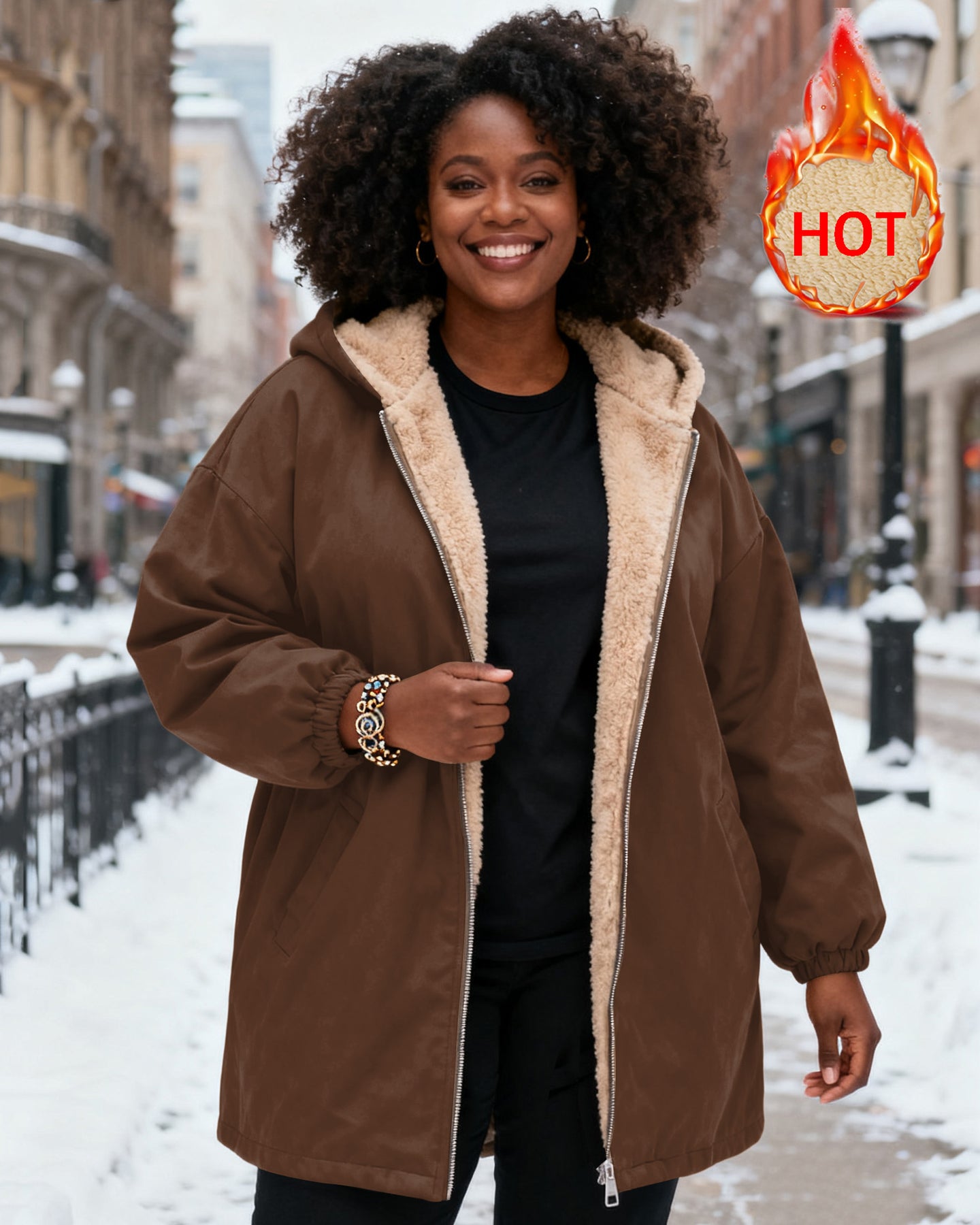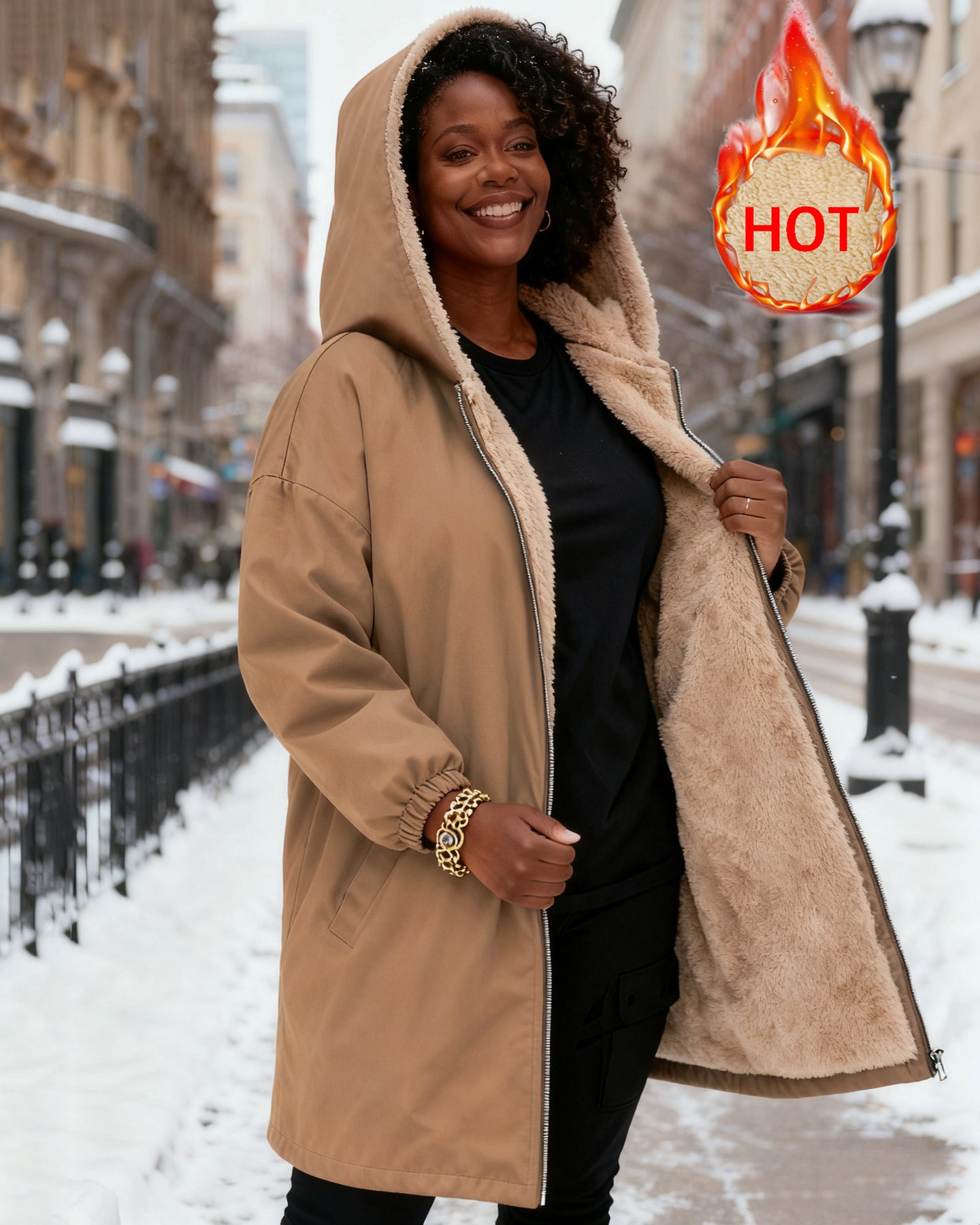 Solid Color Long Sleeve Zip-Up Fleece Long Hoodies