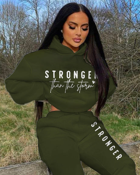 Strong Than The Storm Long Sleeve Hoodie Two Pieces Set