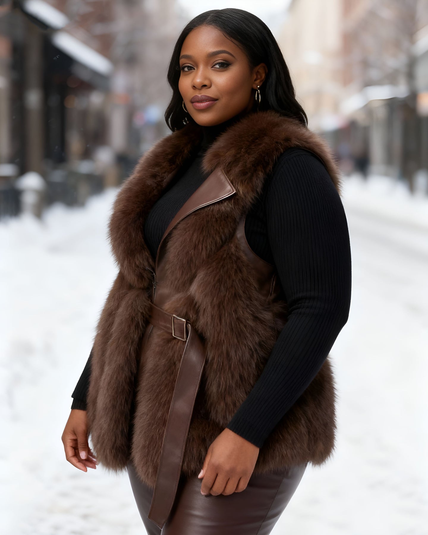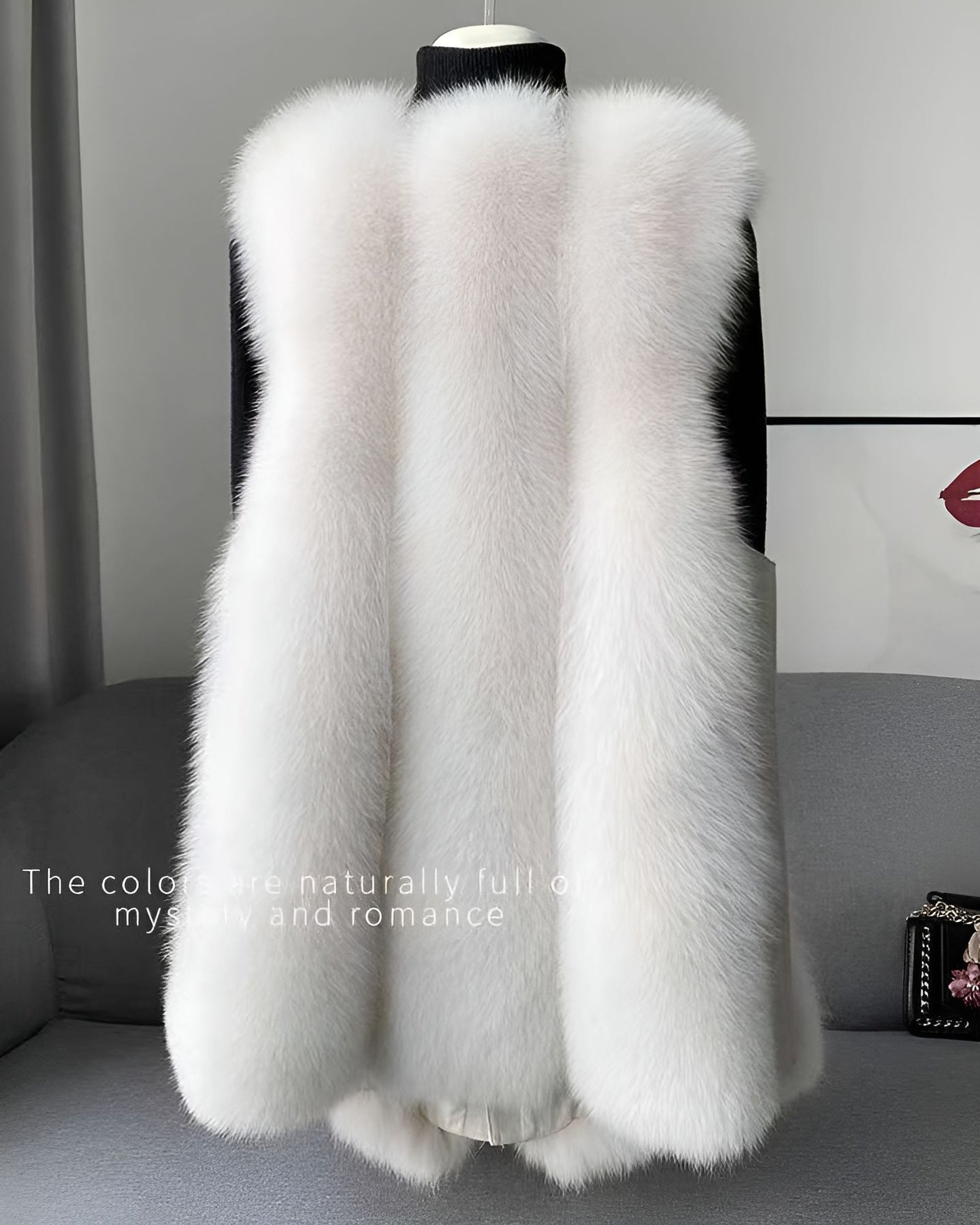 Women's Faux Fox Fur Vest Slim-Fit Slimming Fashionable Young Solid Color Jacket